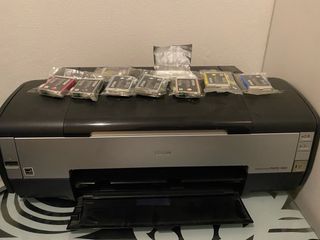 Vendo impresora Epson Stylus Photo R2880 con tecnología de impresión profesional de inyección de tinta y excelente calidad de color y detalle ideal para fotografía y producción de impresiones de gran calidad, con resolución máxima de hasta 5760 × 1440 dpi, tecnología UltraChrome K3 con Vivid Magenta y manejo de múltiples tipos de papeles hasta formato A3+ y papel en rollo. La impresora estaba en perfecto estado de funcionamiento hace 2 años, se debería añadir tinta nueva y limpiar cabezales. Incluye papel fotográfico plano y en rollo gratis. No se aceptan intercambios y el precio no es negociable. Solo recogida.