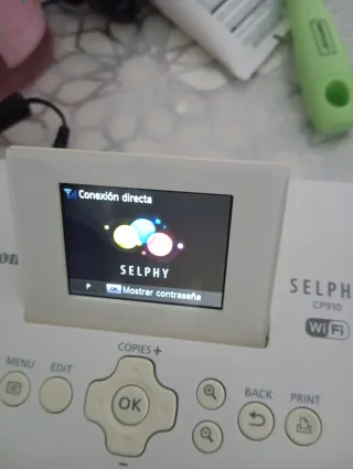 Impresora fotográfica Canon Selphy CP910 con conectividad WiFi. Incluye adaptador de corriente y compartimento para papel. - Modelo: CP910 - Conectividad: WiFi - Incluye adaptador de corriente - Incluye compartimento para papel