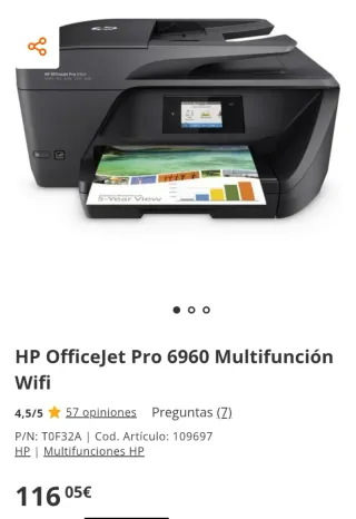 HP OfficeJet Pro 6960 Multifunción Wifi