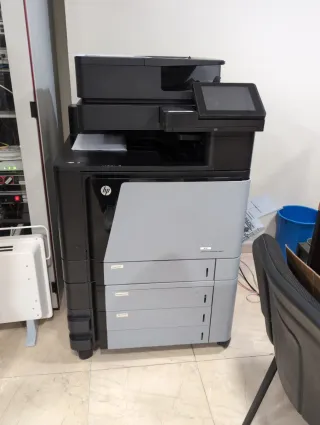 Impresora multifunción HP Color LaserJet Flow MFP M880 en color negro y gris. Diseñada para entornos de oficina. Toners usados de regalo - Escáner - Copiadora - Fax - Bandejas de papel