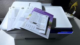Impresora HP en color blanco y verde, completamente nueva y sin usar. - Diseño moderno y compacto. - Ideal para el hogar o la oficina.