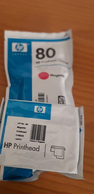 Se venden dos cabezales de impresión HP 80, uno en color cian y otro en magenta. Son originales y están en su empaque.