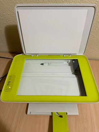 Impresora HP multifunción en color verde y blanco. Está en muy buen estado. - Funciona correctamente. - Incluye cable de alimentación.