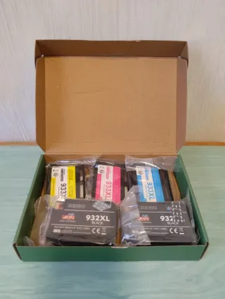 Pack de cartuchos de tinta para impresora. - 2 cartuchos negros HP 932XL. - 1 cartucho cian HP 933XL. - 1 cartucho magenta HP 933XL. - 1 cartucho amarillo HP 933XL.