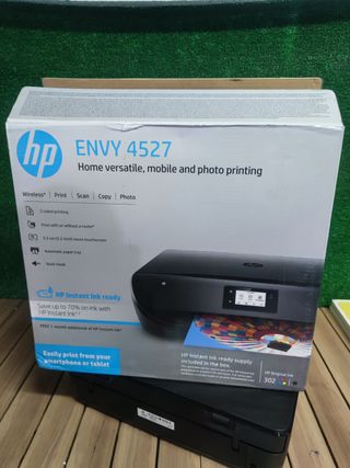 ¡Viene sin cartuchos! Impresora multifunción - HP ENVY 4527, Inyección de tinta térmica, A4, Pantalla táctil, Wifi, Tipo de cartucho 302 -in One HP Envy 4527, imprime fotografías de calidad laboratorio y documentos con nitidez láser con esta impresora elegante y asequible. Imprime desde prácticamente cualquier lugar con tu Smartphone, Tablet o PC conectado a Internet. Prestaciones únicas No es una broma... ¡es un sueño hecho realidad! Gracias a la multifunción HP Envy 4527 podrás imprimir, escanear y fotocopiar con excelente calidad de imagen en tu propia casa. Conseguirás los mejores resultados en cualquiera.