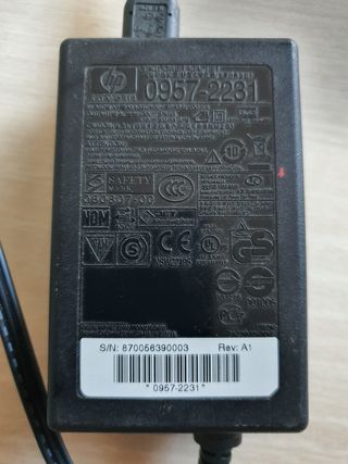 Fuente alimentación AC Power Adapter 0950-4466 para impresora HP color negro. Cable adaptador.