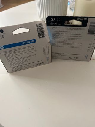Dos cartuchos de tinta negra HP 27, completamente nuevos y sellados. - Modelo: HP 27 - Color: Negro - Cantidad: 2 unidades 20€ LOS DOS