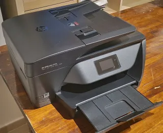 HP OfficeJet Pro 7720 multifunción, imprime hasta A3, copia, escanea y envía fax. Incluye todos los cables originales, en perfecto estado. Sin cartuchos de tinta. La vendo porque tengo otra más pequeña. Conexión WiFi y USB, impresión a doble cara y bandeja de gran capacidad. Lista para usar en cuanto le pongas los cartuchos. Ideal para casa o estudio.