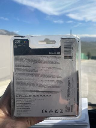 Pack de dos cartuchos de tinta originales HP 301. Son 2 pack de cartuchos originales de tinta HP 301 negro y tricolor,sin abrir y con caducidad mayo 2027. Los vendo porque he cambiado de impresora y son otros los cartuchos que lleva la nueva. Nuevos valen aprox. 80 € los dos Son dos pack de dos cartuchos cada uno en toptal 4 cartuchos, dos color y dos negros.