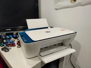 Impresora multifunción HP Deskjet 2632. - Color blanco y azul. - Diseño compacto. - Tinta Negra y de Color incluida; lista para utilizarse. - Funciona a la perfección. - Función de impresión, escáner y copias. - Solo tiene algo de polvo y un par de arañazos en la zona superior del exterior, cosa que no afecta en absoluto a su correcto funcionamiento.