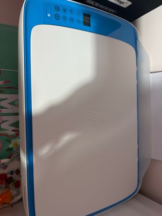 Impresora HP en color blanco y azul, aún en su embalaje original. - Cubierta protectora de plástico. - Cinta de embalaje azul. -Con WiFi y aplicación para el móvil. -Escanea, imprime y fotocopia. - *Con cartucho de color sin abrir y otro en blanco y negro abierto, pero sin estrenar.