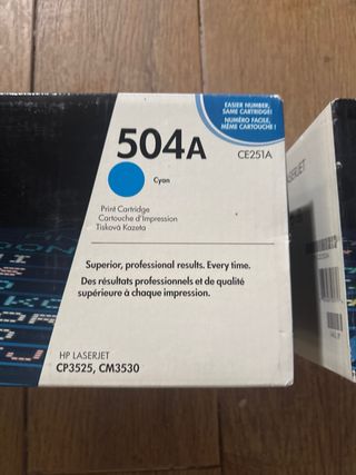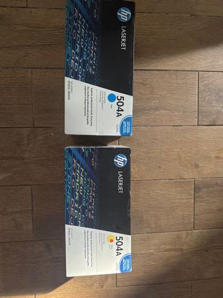 cartucho de impresión HP modelo HP 504A amarillo yellow jaune HP 504A CYAN Azul CP3525 CM3530 NUEVOS A ESTRENAR. sin despreciar TODO NUEVO: última foto precio por unidad, nuevos valen 190€.