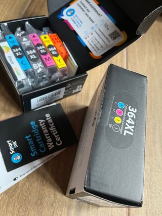 Pack de tintas compatibles para impresoras HP modelo 364 - 2 tintas Cian - 3 tintas Magenta - 2 tintas Amarillo - 2 tintas Negro Se venden porque hemos cambiado de impresora.