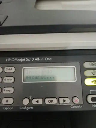 Impresora multifunción HP Officejet 5610. - Función de impresora. - Función de escáner. - Función de copiadora. - Panel de control con pantalla LCD - Con transformador de corriente - Con cable USB Incluye manual original de instrucciones y drivers en cd originales. Tb incluye una carcasa adicional y original del panel de control Funciona como se puede ver en las fotos