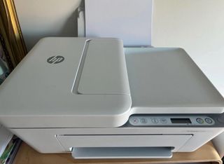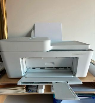 Impresora multifunción HP DeskJet 4120e en color blanco y gris. - Impresión, escaneo y copiado. - Conectividad inalámbrica. Prácticamente sin uso.