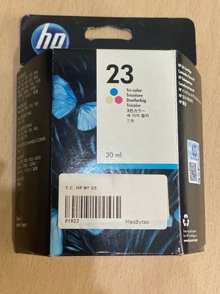 Cartucho de tinta HP 23 tricolor, prácticamente nuevo. - Tinta tricolor (cian, magenta, amarillo). - 30 ml de capacidad. - Compatible con impresoras HP Deskjet, Officejet y más.