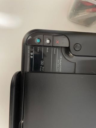 Impresora HP Deskjet F2480 en buen estado. Presenta algunas señales de uso, pero en general está limpia y lista para usar. - Modelo: HP Deskjet F2480 - Funciones: Impresión, escaneo y copiado