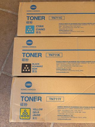Cajas de tóner Konica Minolta. - Tóner Cyan TN711C. - Tóner Magenta TN711M. - toner amarilloTN711Y Pack de 3 colores para c654 o c754