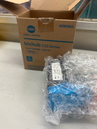Toner cyan Bizhub c35 series A0X5452 TNP22C Konica minolta en su caja precintado, abierto para hacer foto. Se hacen envíos o se entrega en mano.