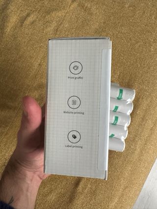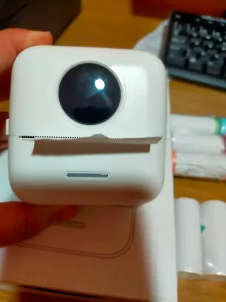 Mini impresora térmica portátil, ideal para llevar contigo. Incluye varios rollos de papel. - Impresora portátil con diseño moderno. - Varios rollos de papel térmico incluidos.