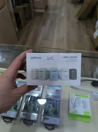 Impresora térmica portátil de la marca Polono. Ideal para imprimir etiquetas. - Diseño compacto y ligero. - Incluye cable de carga. ios, android, smart app, Regalo dos royos de recambio termicos