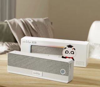 Impresora portátil Peripage A40, ideal para llevar contigo. Incluye cable de carga. - Diseño compacto y ligero. - Acabado en tela gris texturizada. - Detalle de oso en la parte superior.