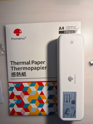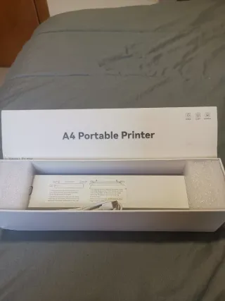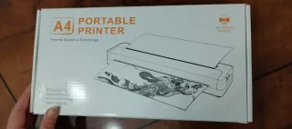 Impresora térmica portátil A4 con tecnología de impresión sensible al calor. Ideal para llevar contigo y usar en cualquier lugar. - Conectividad Bluetooth. - Válida para impresión de documentos y calco de tatuaje. - No necesita tinta. - En el caso de tatuajes, funciona mejor con calcos pequeños y medianos. - En perfecto estado. - A la caja le falta una aleta porque soy una ansias para abrirlas, pero la impresora y demás está perfecta que es lo importante. - La vendo porque me regalaron otra en Navidad.