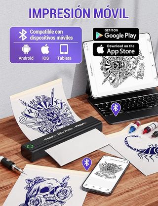 Impresora térmica para tatuajes portátil, ideal para tatuadores principiantes y profesionales. Permite imprimir diseños de forma rápida y precisa desde el móvil o la tablet. Conexión Bluetooth Resolución 203 DPI para trazos claros y definidos Compatible con smartphones y tabletas Impresora portátil, ligera y fácil de transportar Incluye 10 hojas de transferencia para tatuajes Uso sencillo y rápido, sin tinta ✔️ Nueva a estrenar ✔️ Ideal para estudio o uso móvil ✔️ Perfecta para practicar y trabajar diseños de tatuaje