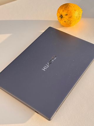 Portátil Huawei en acabado gris plateado. Incluye una impresora HP. - Diseño elegante y moderno. - Puerto USB-C visible.