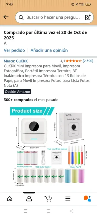 Mini impresora térmica portátil, ideal para imprimir fotos y notas desde tu móvil. Incluye 13 rollos de papel. - Conectividad Bluetooth. - Diseño compacto y ligero. - Incluye cable USB. - Incluye 5 bolígrafos de colores (din usar) Solo la he usado una vez. Solo he usado un poco de papel de etiqueta