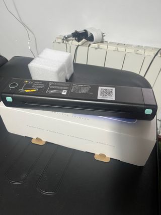 Mini impresora térmica portatil. Imprime en blanco y negro fotos, texto o lo que quieras mediante la app del movil. A estrenar.