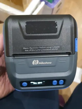 Impresora portátil de la marca Milestone. - Diseño compacto y moderno. - Indicador de rollo vacío en pantalla.