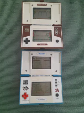 Consola portátil clásica de Nintendo. DONKEY Kong II 49 € buen estado y Gold Cliff 25 €, falta tapa, la podría hacer con impresora 3d y parte pegada.La última vez que se usó funcionaban, lo comprobarla antes del envío.