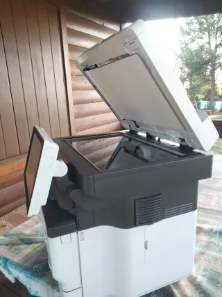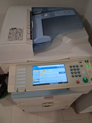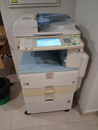 está en funcionamiento, aunque en las copias salen rayas, se puede ver sin compromiso además regalo otra para Piezas Impresora multifuncional Ricoh Aficio MP C2800 en color beige y multicolor. - Funciones de impresión, escaneo y copiado. - Pantalla táctil a color para fácil manejo. - Bandejas de papel de gran capacidad.