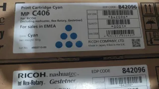 Cartucho de tóner Ricoh para impresoras láser a color. Dispongo de 2 unidades, precio por unidad. - Color: Cyan - Tipo: 165 - Código de producto: G271-17 - Número de lote: 1306