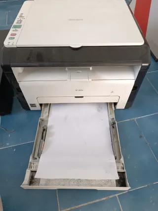 Impresora multifunción Ricoh SP 1200sr en tonos beige y gris. - Modelo SP 1200sr. - Diseño compacto. Está en buen estado, hace mucho que no se utiliza por lo que necesitará una puesta a punto