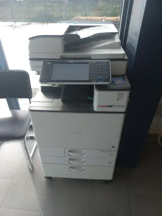 Equipo multifunción Ricoh MP C2050 en color blanco y azul. - Escáner. - Copiadora. - Impresora. Impresora propia que se acaba de cambiar en perfecto gracias estado por una de renting.