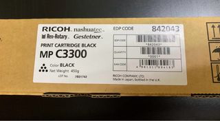 Cartucho de tinta negra para impresoras Ricoh MP C3300. - Color: Negro Magenta Yellow y Cyan - Peso neto: 450g - Código EDP: 842043 - Fabricado en Japón, embotellado en el Reino Unido.