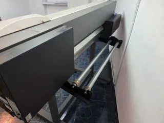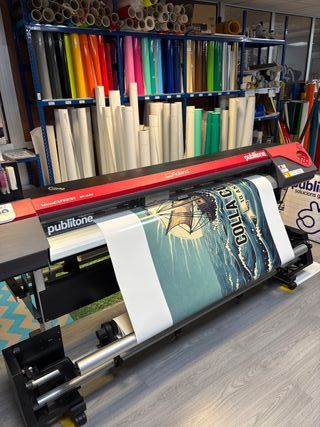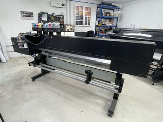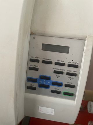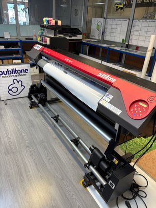 impresora/cortadora de gran formato, 160 cm de boca, cuatro cabezales, tinta ecosolvente, configuración de tintas 8 colores, recogedor de material, actualmente en funcionamiento, de vez en cuando aparece el mensaje de cambio de correa pero funciona perfectamente, a toda prueba. La vendemos para comprar el modelo nuevo. Precio: 3.500 € + iva (transporte no incluido) Precio: 4.500 € + iva (con correa sustituida - transporte no incluido) - Ideal para trabajos de impresión de gran formato.