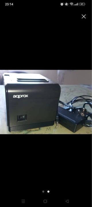Impresora térmica de la marca Aqprox en color negro. Incluye rollo de papel y su adaptador de corriente. - Diseño compacto y moderno. - Fácil de usar.