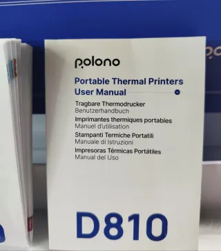 Impresora térmica portátil Polono D810. - Incluye guía rápida y manual de usuario. - Incluye rollo de papel térmico. - Cable de alimentación.