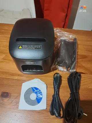 Impresora térmica en color negro. - Diseño compacto y moderno. - Ideal para negocios y puntos de venta. - Con todos sus accesorios, cables y demás.