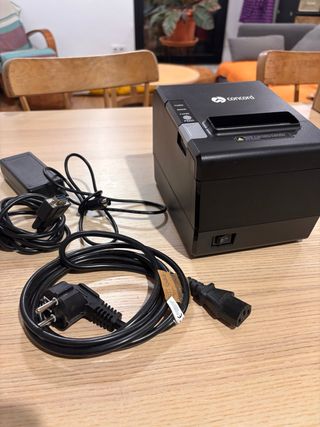 Impresora de tickets con conectividad WiFi. - Diseño moderno en color negro con detalles en azul. - Incluye un rollo de papel para empezar a imprimir. Disponible a partir del 22 de febrero. Como nuevo. Nueva comprada por 124€