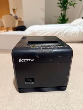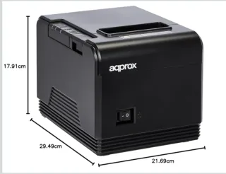 Impresora de tickets de la marca aqprox en color negro. - Diseño compacto y moderno. - Interruptor de encendido/apagado visible. Papel térmico de 80