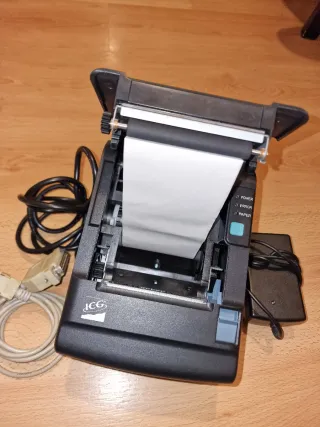 Impresora térmica para tickets de la marca ICG. Compacta y funcional. Se envía con todos sus cables. Muy poco usada - Conexión para cable de datos. - Adaptador de corriente incluido. - Indicadores LED de estado (Power, Error, Paper).