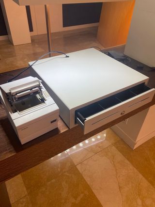 Se vende conjunto de caja registradora y mini impresora de tickets. - Caja registradora con compartimentos para billetes y monedas. - Mini impresora de tickets térmica. - Incluye cables y adaptadores. Muy muy nueva. Todo esta con su embalaje y el driver para su instalacion.Se vende por cierre de tienda. Entrego en mano en palma Se Regala con la compra rollos para la impresora.