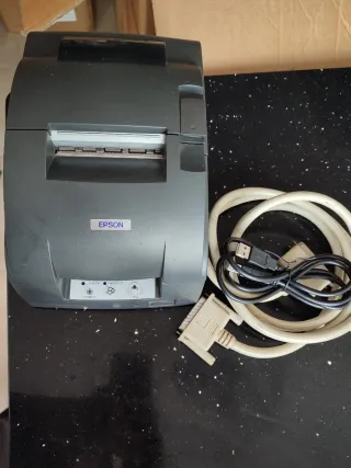 Impresora de tickets Epson en color negro. Casi sin uso. Se envía con su caja, manual, todas sus piezas, cables y un rollo de papel ya puesto. Ningún defecto. Impresora térmica - Diseño compacto. - Fácil de usar.