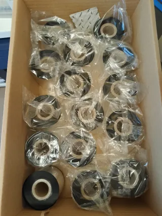 15 rollos de tinta para impresoras térmicas. El rollo es de color negro y viene en un carrete de cartón. - Color: Negro - Material del rollo: Plástico - Material del núcleo: Cartón