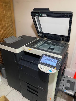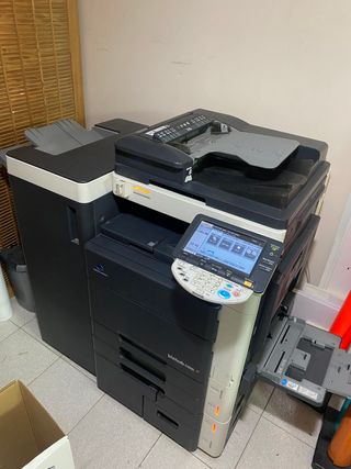 Modelo Bizhub C550. Con unidad de plegado y grapado. Sólo 100.000 copias. Pequeño fallo en la bandeja de entrada manual solucionable cambiando los rodillos.