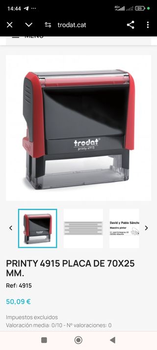 Sello automático sin estrenar marca trodat printy referencia 4915 sin estrenar con una caja de recambios para oficinas papelería etc